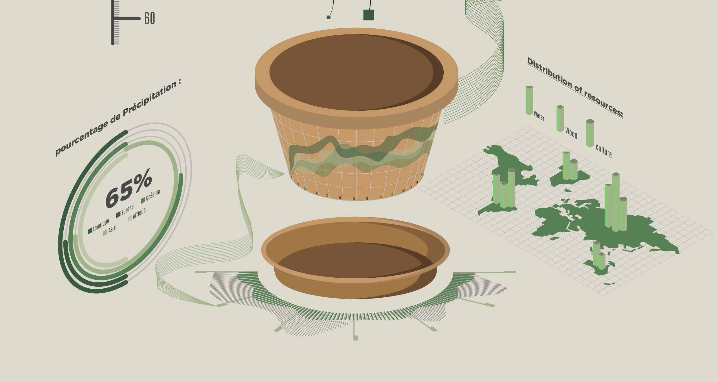 Le but de ce projet était de rendre des données complexes sur les plantes accessibles et compréhensibles à travers une datavisualisation claire et intuitive. L’infographie réalisée a mis l’accent sur trois aspects principaux des plantes : leur consommation en eau, leur provenance géographique, et leur quantité de production. Le site web, quant à lui, intégrait l’API pour offrir une expérience interactive et informative.
