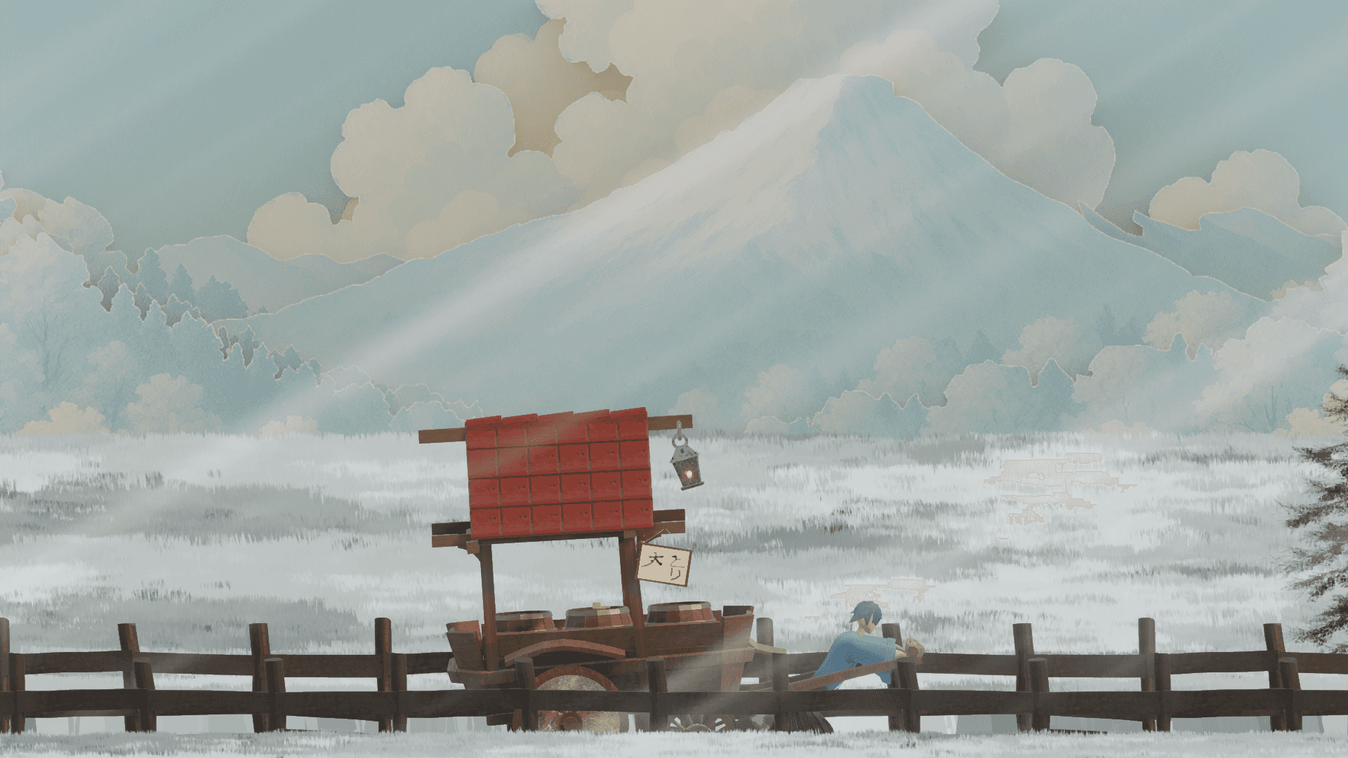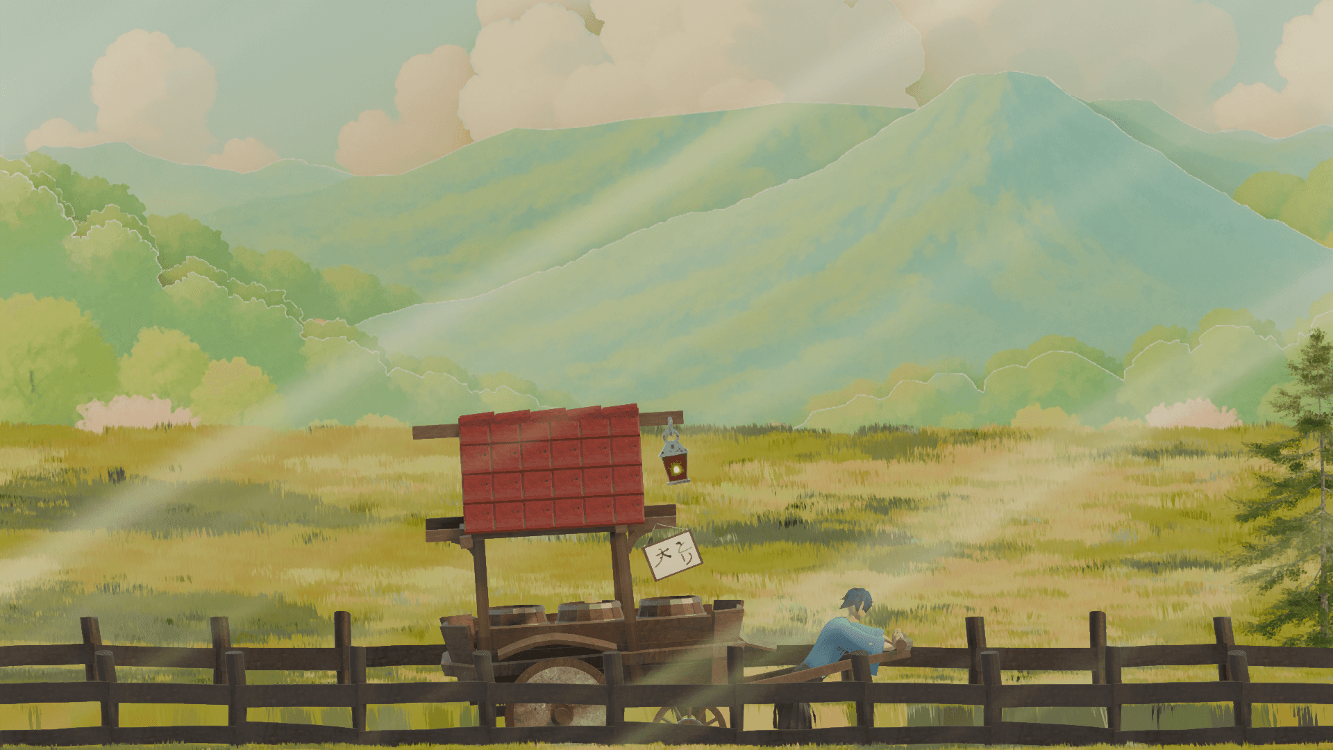 L'idée était de modéliser Takumi, un marchand ambulant solitaire arpentant les chemins d’un Japon poétique et stylisé. Le personnage tire une charrette contenant divers objets et outils, ce qui évoque une vie de déplacement et de commerce itinérant. L'ambiance souhaitée est contemplative : Takumi n'est pas un héros d'action, mais un protagoniste passif, ancré dans la nature et le temps qui passe.